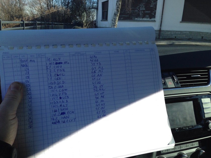 Piacevole contest effettuato dall’auto con log su carta ed una vecchia radio FT726R ed una vecchia antenna5 Cushcraft 5e diventata 4el a causa di perdita di una farfalla di bloccaggio dell’elemento.