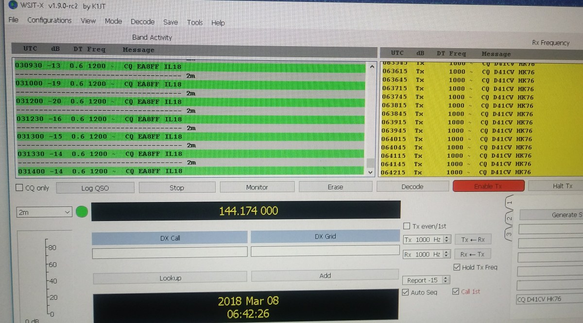 CQ CQ D41CV CQ CQ D41CV remote operation FT8 144.174 1000Hz. Power 6 W FT8 GPS locked into a 5el Share this:Tweet Click to share on WhatsApp (Opens in new window) WhatsApp More Click to share on Reddit (Opens in new window) Reddit Share on TumblrLike Loading... Correlati Author: Andrea HB9DUR I love ham radio contesting View all posts by Andrea HB9DUR