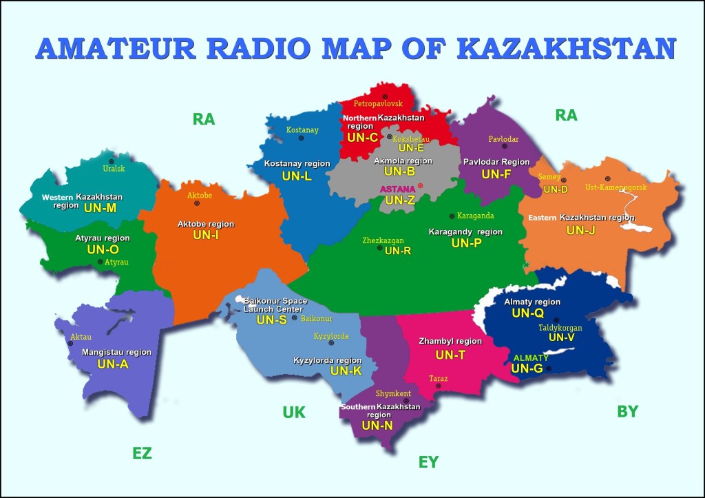 As several friends keep telling me “I am copying #Kazakhstan so now I should copy your signal from #Kyrgyzstan“, I am publishing here a Map of Kazakhstan identified by the first letter of the suffix. In my case, signals from UN-G area shold be detected to have a higher chance to copy me. UN country is very big.