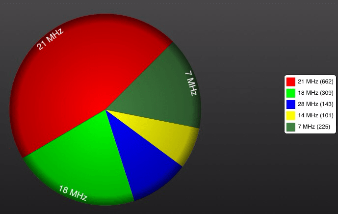 Conditions have been poorer compared to the previous weekend. This time I have logged 4 US stations, the rest is most EU, UA, and JA. No activity on 80m and 160m.